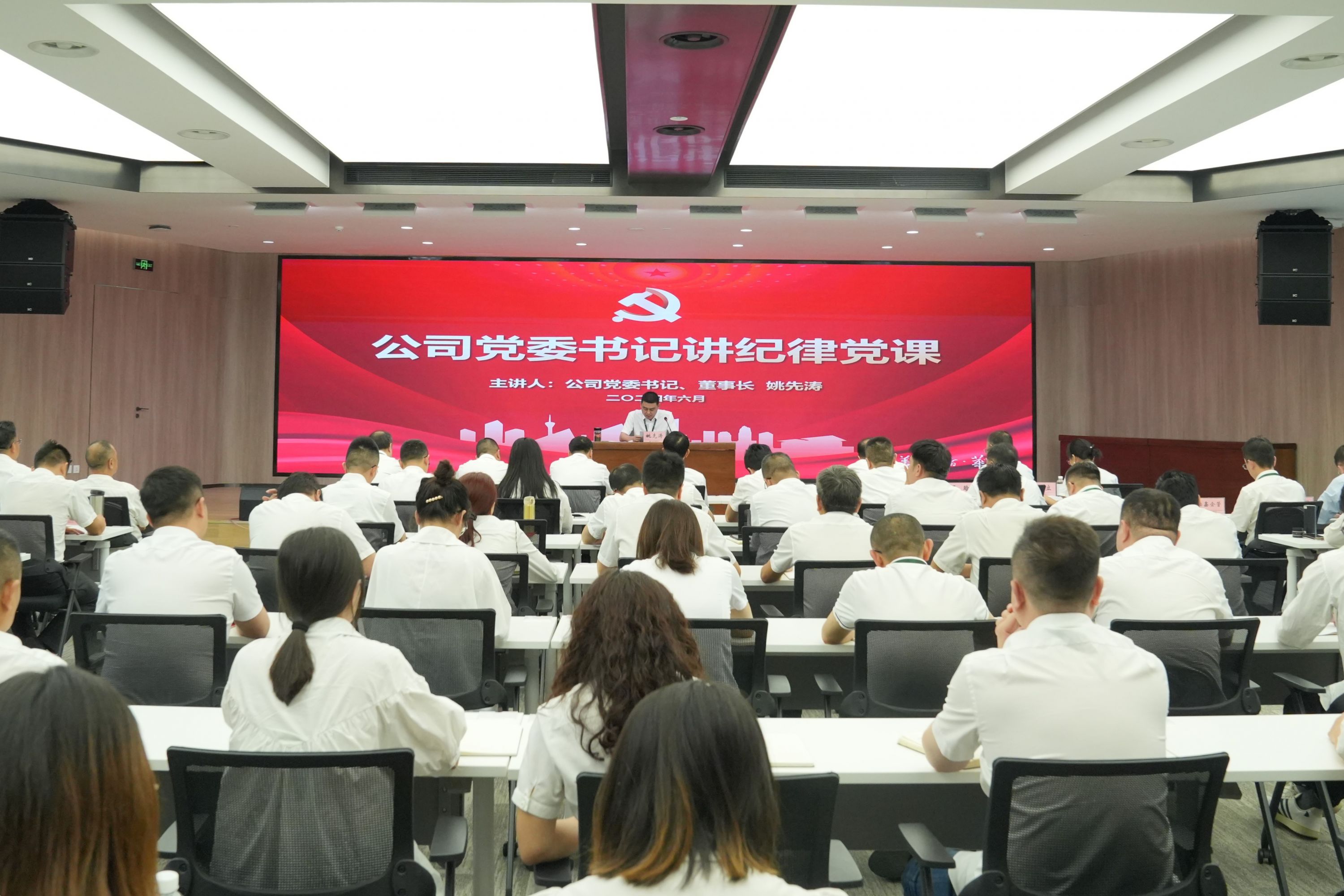 為深入學習貫徹習近平總書記關于黨紀學習教育的重要講話和重要指示精神,推動黨紀學習教育走深走實。按照省委和集團黨委安排,6月27日上午,公司黨委書記、董事長姚先濤以《以學紀為基礎、筑牢正己之魂,為實現公司高質量發展提供堅強紀律保障》為題,為黨員干部講授紀律黨課。